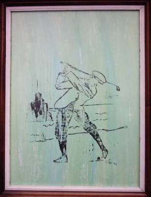 Handdruck auf Papier. Hintergrund Acryl lasiert (gerahmt).