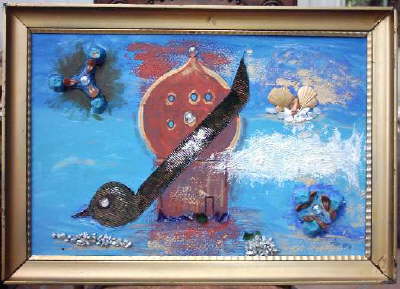 2004 - 68x48cm (gerahmt) mixed Material auf Holzplatte.- UNVERKÄUFLICH -