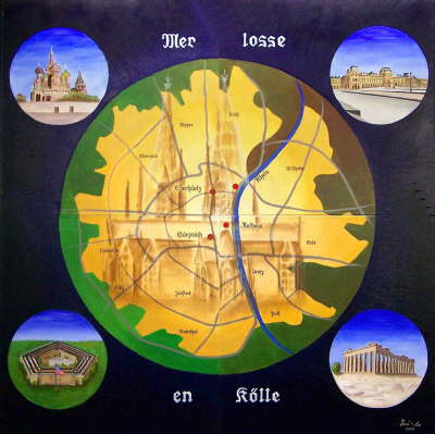 2006 - Gemeinschaftswerk von Lothar Fanslau und AnneMarie Siber anlässlich der Karnevalsausstellung in 2007. Mischtechnik auf Leinwand.