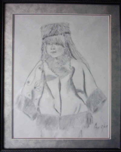 1998 - 46x56,5cm - Kohle auf grauem Papier (gerahmt). Zeichnung meiner Puppe.- UNVERKÄUFLICH' -